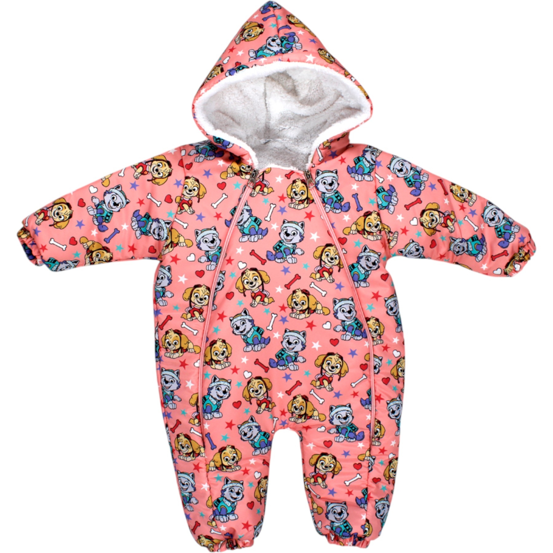 Бебешки космонавт с щампа на Пес Патрул. Топло подплатен с каракул, качулка и двоен преден цип за лесно обличане и събличане.Осигурява топлина и комфорт за вашето мъниче.