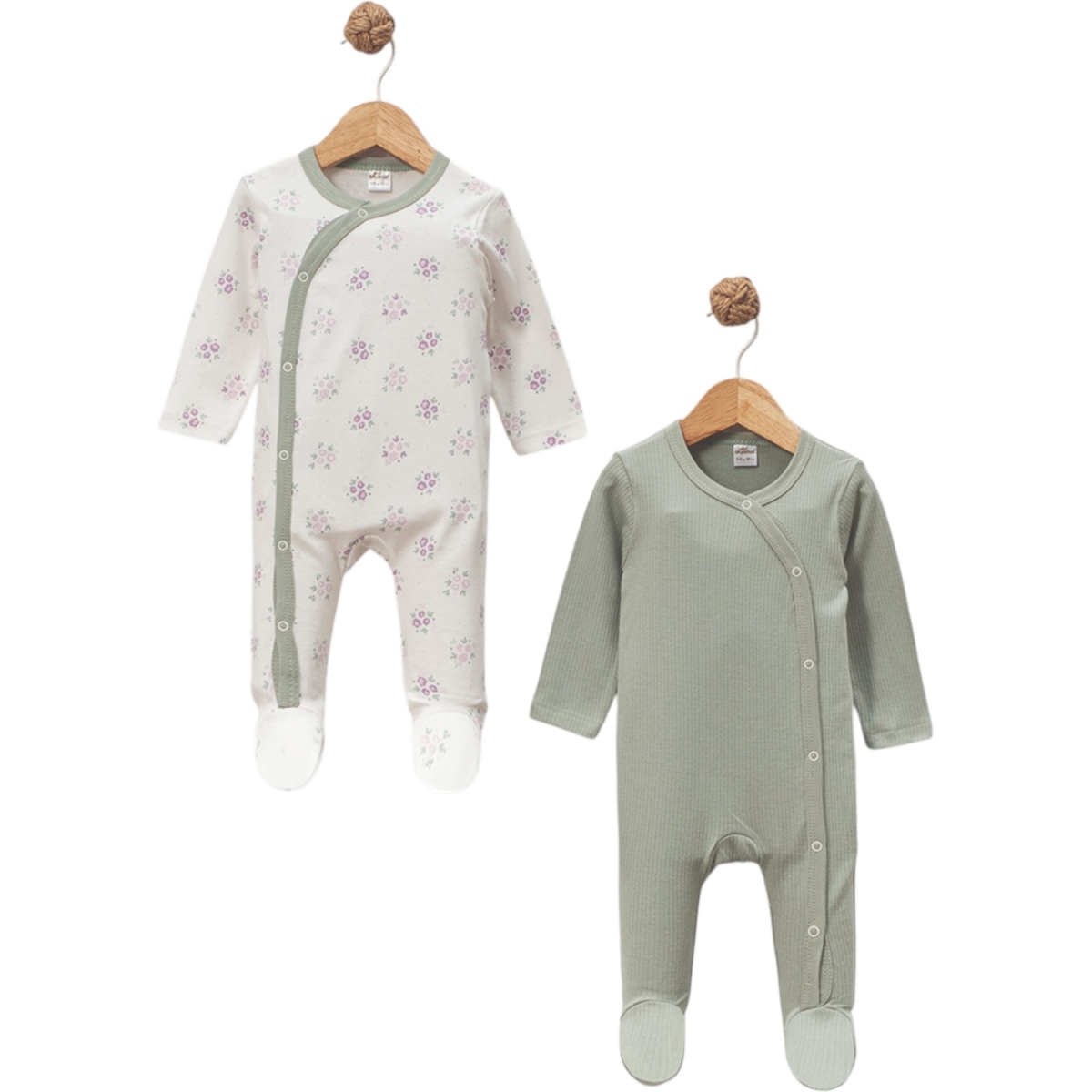 Бебешки гащеризони с дълъг ръкав и странично тик так закопчаване, тип прегърни ме в два цвята. Комплект от 2 броя. Подходящи за ежедневието или за сън.