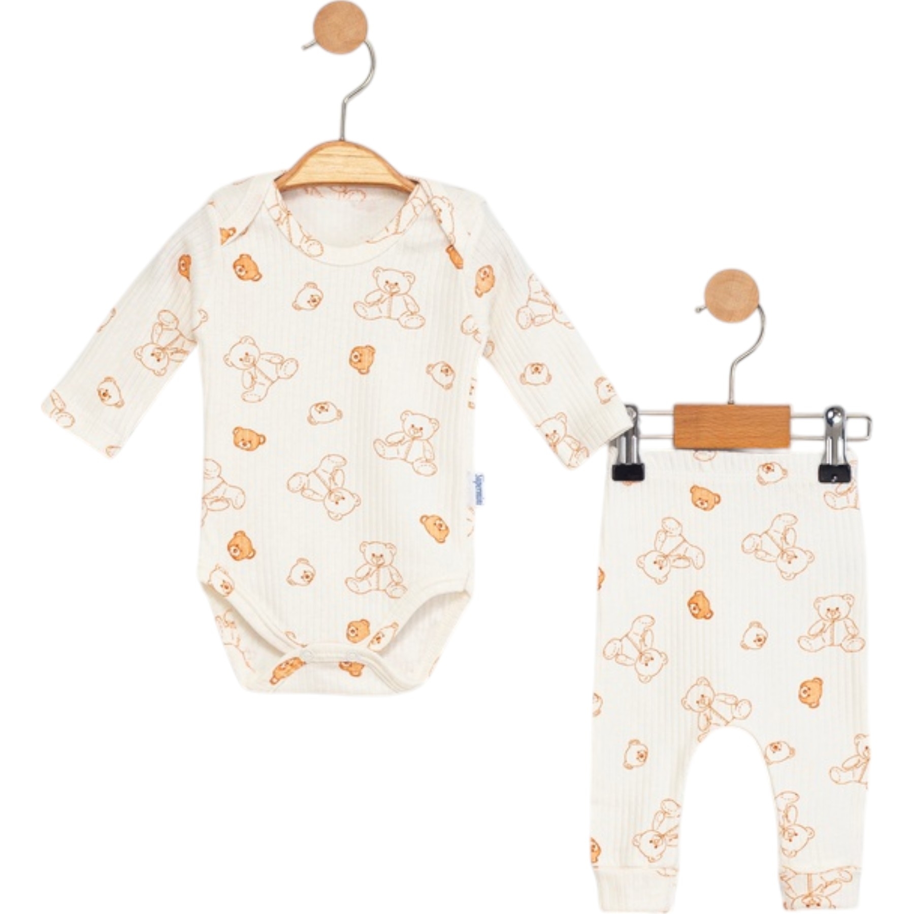 Бебешки комплект то две части, включва боди с дълъг ръкав и дълъг панталон с десен на мечета.Комплекти популярни и практични за ежедневието на малките деца.