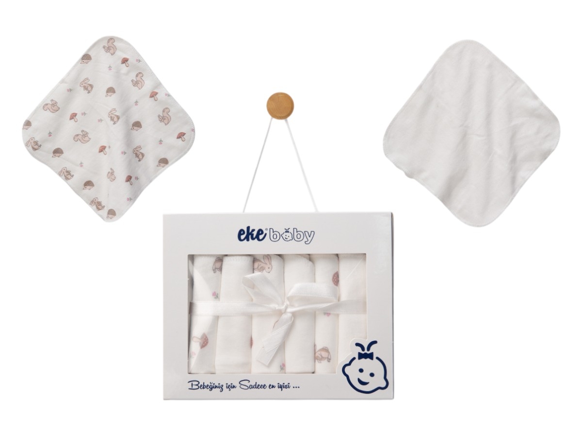 Комплект памучни кърпички с принт за баня, опаковани 6 броя в кутия