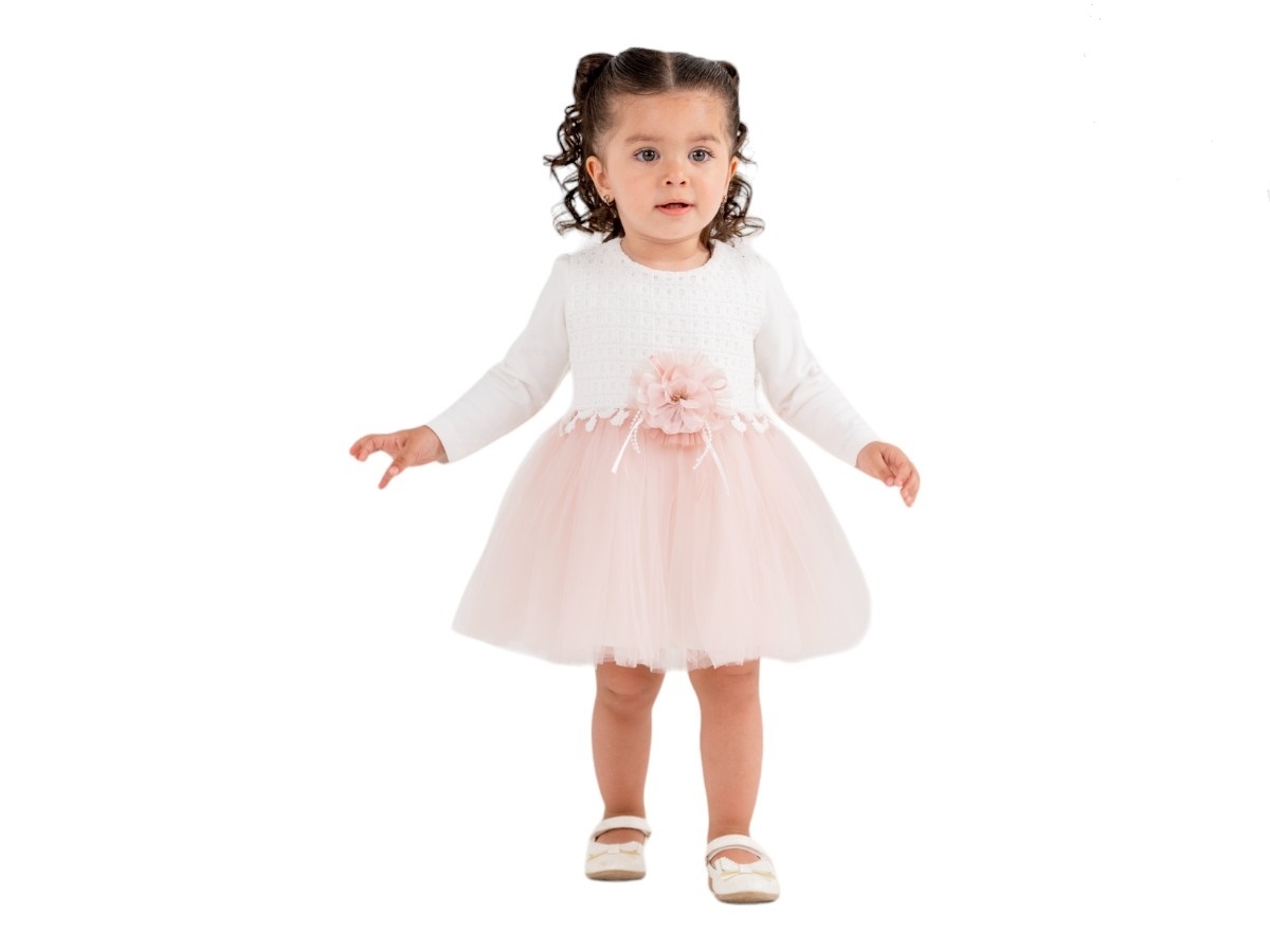 Детска рокля с дълъг ръкав в розово и бяло